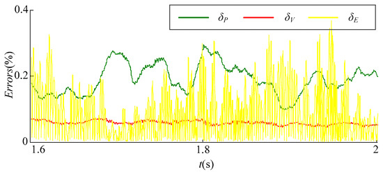 where Pref/P, Vref/V and Eref/E are respectively the active power P of the power interface, the RMS value of the phase voltage U2 of the physical subsystem and the positive polar DC voltage E, of the original system/the DPHS system with our improved ITM, as shown in Figure 6. The variations of the relative simulation error δP, δV and δE are depicted in Figure 9.