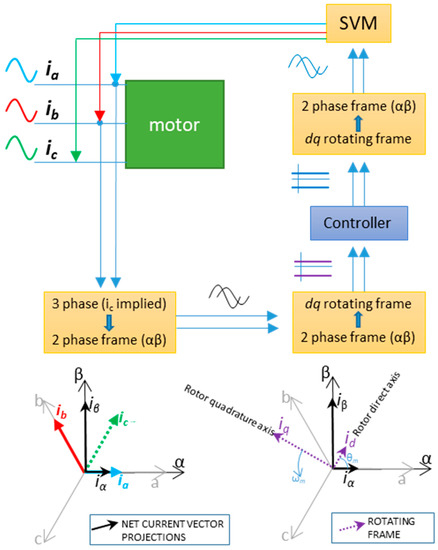 The most advanced mid-drive systems are based on a sensorless motor control scheme that measures the magnetic field produced by the motor in the windings [10,11]. This technique, by avoiding the use of external sensors, such as Hall effect sensors, reduces costs and increases the reliability of the system. Among these schemes, one of the most recent is the InstaSpinTM system [12] developed by Texas Instruments.