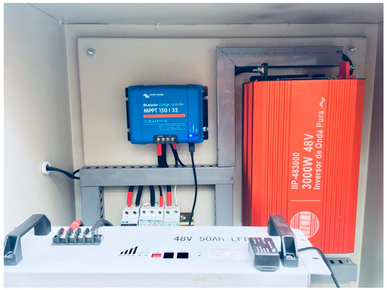 In [34], a methodology to verify the design and performance of DC charging stations for electric two-wheelers is presented. This charging station is directly powered by the main grid and does not use renewable energy systems. Nevertheless, it uses an acid lead battery system as backup in order to reduce the impact of the charging operation on the main grid. The batteries taken as a reference for electric vehicles are LiFePO4, 51 V, 40 Ah, which are evaluated as the external load by using a buck-type converter.