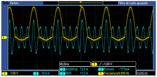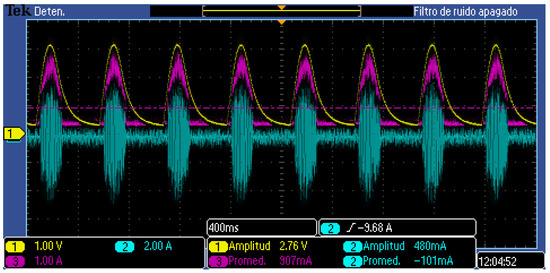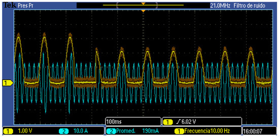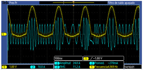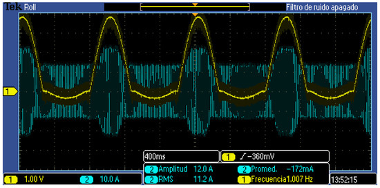 Motor current behavior after a step in the peak current reference from 22 A to 15 A. Pedaling frequency, 10 Hz.