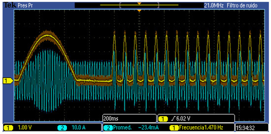 In Figure 21, the reference signal frequency increases, consistent with a cyclist pedaling faster. In this case, the period of the motor current and the pedaling frequency became comparable, degrading the ability to track the pedaling torque with precision. This could be solved by increasing the gear ratio between the motor and the pedaling sprockets.