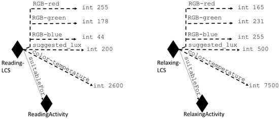 - the devices deployed in the room, whose formal description is performed referring to the Smart Appliance REFerence Ontology (SAREF) [58];