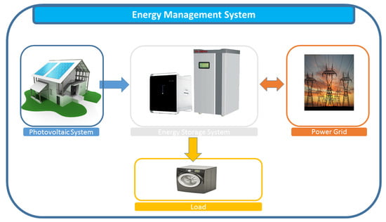 Technically, ESSs are located between the energy-production units (e.g., photovoltaic systems), the power grid, and the electric loads, so that the energy flow is accordingly managed by the system. At any point in time, the system combines an energy mix generated from three different sources: (1) the PV system, (2) the energy-storage system, and (3) the power grid. This necessitates an energy-management system (EMS) that is able to optimize generation from aforementioned available electricity sources. This optimization is based on a set of rules that specify a prioritization list in choosing different energy sources.