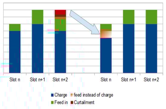 Is our proposed heuristics-based optimized policy to minimize curtailment that takes decisions in the following manner: Since the maximum feed-in to the power grid is limited, there can occur situations where the generation exceeds this limit. If the ESS is already full during this state, the generation has to be curtailed. If the system could predict such situations, it could plan enough storage capacity for the generation such that this energy would have been otherwise curtailed. Hence, the idea is to feed energy into the grid instead of charging the ESS at an earlier time to prepare the need for later charging. Consequently, to achieve this, the corresponding policy consists of two different phases: Planning and Optimization. In the Planning phase, for each timeslot of the corresponding day, first a coarse plan on how to use the available energy is generated, similar to the one applied by Algorithm 1. However, the main differentiator here is the generation forecasts (see Section 4) that help to predict the power generation of the photovoltaic system in a day-ahead fashion. In case more energy is available, then this can be used to charge the ESS and feed into the grid so that the remaining surplus is remembered. In the Optimization phase, the remembered surplus is handled. The algorithm iterates the timeslots in a backward direction to identify a candidate slot where more energy can be fed into the grid to clear storage capacity for the surplus later on. The amount of charge delayed to absorb the surplus, at least partially, is limited by the intermediate timeslots. The delay of charge must not lead to the depletion of the ESS. During the course of the day, the ESS is charged as planned, the remaining available energy is fed into the grid and discrepancy between planning and real execution is logged. Algorithm 2 gives the different steps of the “Loss Avoidance” policy.