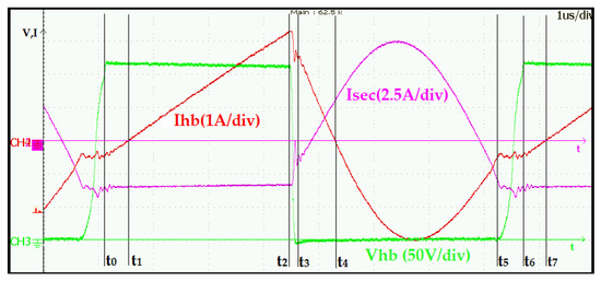 With the proposed control method, where Tt is kept constant and therefore Ihb_pp = Ihb_h − Ihb_l, Equation (8) demonstrates the shift of the transformer T1 magnetizing current due to the output current.