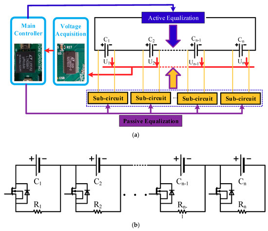 Figure 1a. The equalization circuit is primarily composed of the main controller, the voltage acquisition module, the composite equalization module, and so on.