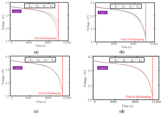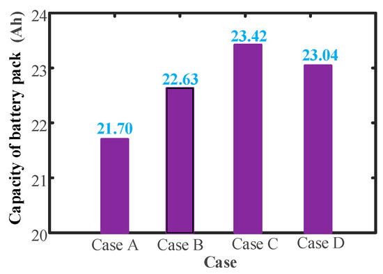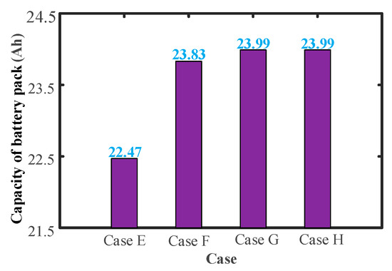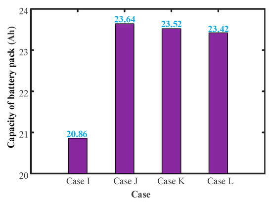 Figure 8, the battery pack capacity under four cases after discharging is 22.47 Ah, 23.83 Ah, 23.99 Ah, and 23.99 Ah.