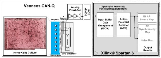 - Vallicelli, E.A.; De Matteis, M.; Baschirotto, A.; Rescati, M.; Reato, M.; Maschietto, M.; Vassanelli, S.; Guarrera, D.; Collazuol, G.; Zeiter, R. Neural spikes digital detector/sorting on FPGA. In Proceedings of the Biomedical Circuits and Systems Conference (BioCAS), Turin, Italy, 19–21 October 2017. [Google Scholar]