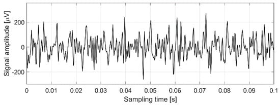 Due to the high noise power, using a simple 5∙σ-threshold-crossing detector is not a viable option [], because it would lead to discarding most of the action potentials. In particular, with reference to Figure 2, a 5∙σ-detector at 120 μVRMS noise would lead to a 600 μV threshold voltage and hence jump over several relevant action potentials events.