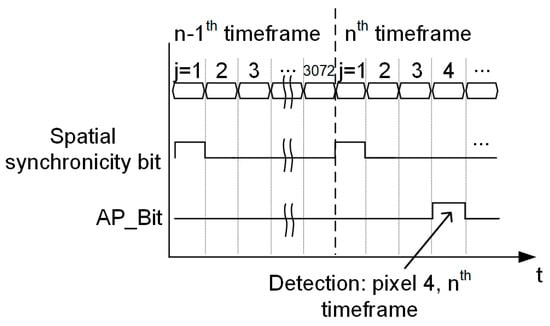Notice that the algorithm uses a spatial bit/flag (called spatial synchronicity bit (SSB)) whose time evolution w.r.t. the MEA input data stream is qualitatively shown in Figure 8. The SSB flag is high when the input sample comes from the first pixel of the matrix, otherwise it is low.