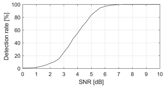 Increasing the SNR of the single pixel up to 6 dB the NSDD has very high performance and detects 98% of APs, coherently with the error probability imposed in Equation (1).