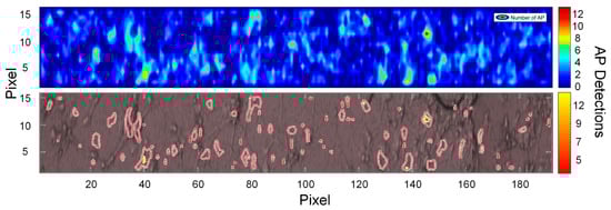 - neural spike spatial map, representing the cumulative number of AP vs. pixel for a given 15 s acquisition time;