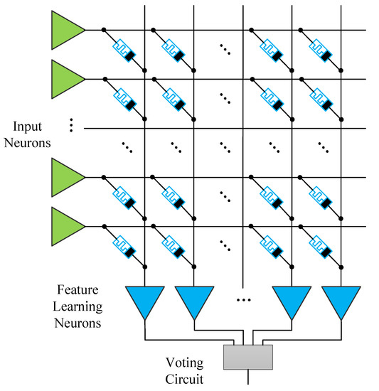 - Querlioz, D.; Bichler, O.; Dollfus, P.; Gamrat, C.; Querlioz, D.; Bichler, O.; Dollfus, P.; Gamrat, C.; Querlioz, D.; Bichler, O.; et al. Immunity to Device Variations in a Spiking Neural Network with Memristive Nanodevices. IEEE Trans. Nanotechnol. 2013, 12, 288–295. [Google Scholar] [CrossRef]