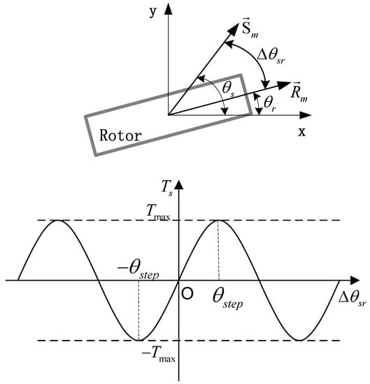 In Figure 5, is the direction of the magnetic field generated by the stepper motor stator, whose rotation angle is represented by . is the direction of the magnetic filed of the rotor, whose rotation angle is represented by . is the step angle and is rad. is calculated by