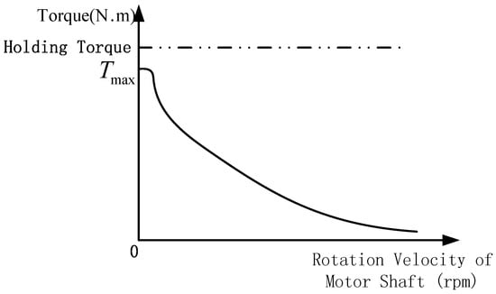 where is the maximum output torque of the stepper motor. Note that is different from and is smaller than holding torque. In addition, note that is not a constant but a curve of rotation velocity of motor shaft, as shown in Figure 6.