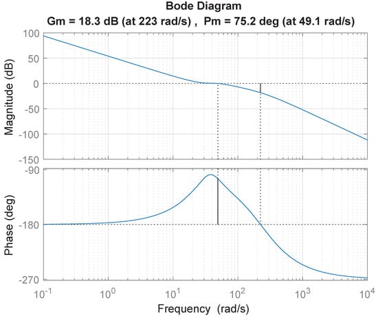s is obtained in the last part, which means the db bandwidth of is about rad/s and is more than 10 times larger than . This means can be removed from Equation (15), and a simpler version of , , is expressed as,
