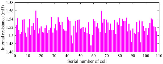 According to Equation (2), the internal resistance of all retired cells could be directly calculated by the partially discharging curve. Moreover, the fast acquisition of internal resistance also provided conditions for the fast capacity screening.