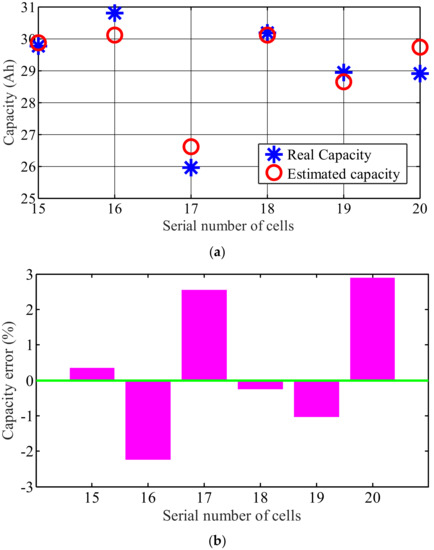 Estimated results: (a) Capacity estimation results; (b) estimation error.