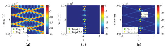 It is observed that targets’ echoes are all strong. When the receive beam points to one target, the power reflected from other targets will turn to sidelobe interference, which results in a heavy measurement error []. It means monopulse processing cannot work anymore. For unresolved targets, if the range difference between targets is larger than receive beamwidth, the merged measurement is an issue of sidelobe interference. If not, it is an issue of low resolution.
