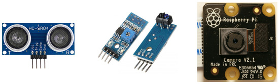 Figure 6. Ultrasonic sensor model HC-SR04, IR sensors and Raspberry PiCamera. - Infrared sensors