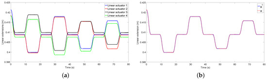 (a) extension of the linear actuators; (b) extension of a linear actuator using Equation (32).