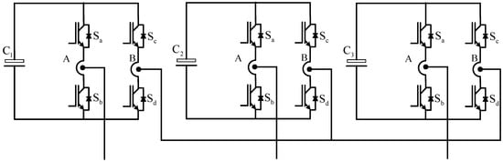 By using different combinations of the four switches, Sa, Sb, Sc and Sd, each inverter level can produce three different outputs of voltage, i.e., , 0 and by connecting the dc source to the ac output. can be obtained by turning on switches Sb and Sc whereas for obtaining , switches Sa and Sd can be turned on. However, for achieving the output voltage on 0 level either Sa and Sb or Sc and Sd can be turned on. The different full-bridge inverters must be connected in series in the way that the finally produced voltage waveform should be the sum of the inverter outputs. Multilevel cascaded inverters are proposed for the applications such as static VAR generation (reactive power control), an interface with renewable energy sources and for battery-based applications. The main reasons for preferring a cascaded multilevel H-bridge inverter are the availability of possible output levels more than twice the number of dc sources [42,43,44]. The series of H-bridges enables the manufacturing and packaging process more easy, quick and economical. However, the requirement of a separate dc source for each H-bridge constrains the applications of these inverters to the products having multiple separate DC sources already or readily available.