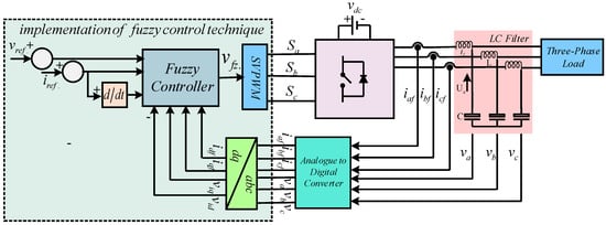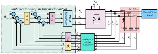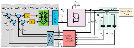 The voltage across capacitors, and current across inductors, are measured and transformed into a synchronized dq reference frame. The input voltage is computed in the dq frame on the basis of in the three-phase reference frame. The computed data is then transformed from rotating dq to abc reference frame. Afterward, the PWM technique would be selected accordingly.