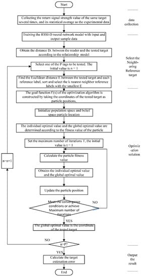 Each particle is thought as the estimated value of the testing label in the solving process of Quantum particle swarm optimization algorithm, f (x) in Equation (7) is the fitness function of the particle. The localization algorithm proposed in this paper is shown in Figure 3, the main operations are