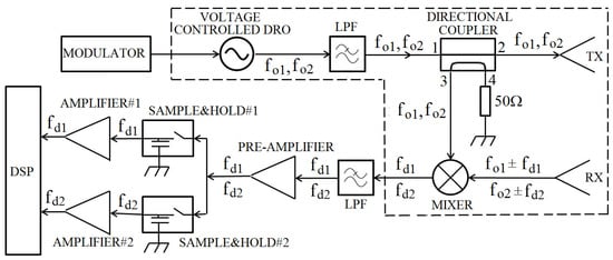 MDS use different methods to detect movement, and can be divided into two main categories: passive detectors and active detectors. Passive detectors (for example, most infrared detectors) do not send out signals but merely receive signals, such as changes in brightness temperature, light intensity and so on. On the other hand, active detectors (such as microwave detectors) act as a radar, i.e., they transmit energy that propagates in the protected area, it is scattered by the existing bodies, and then it is received back by the MDS. In this case, for example, an alarm can be triggered by any perturbation of the reflected waves caused by a moving object or by any movement of a body with a Radar Cross Section (RCS) larger than a prescribed threshold (e.g., to detect humans but prevent the detection of mice). A block diagram of a microwave MDS is shown in Figure 1. The microwave part of the MDS is made by a voltage-controlled oscillator, a low pass filter, a transmitting and a receiving antenna, a mixer and a directional coupler. The directional coupler is required to perform coherent detection of the received signal, thus allowing a larger receiver sensitivity and then a larger detection range. Thus, this coupler requires both strong coupling and large isolation. On the other hand, it should be compact and low-cost. As such, the directional coupler is one of the most critical components of a microwave MDS.