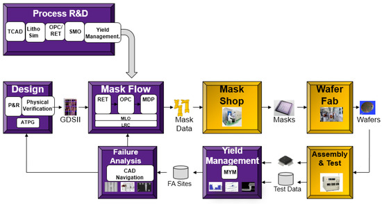 Physical defects play a crucial role in IC yields [5]. In case of complementary metal oxide semiconductor (CMOS) processes, one of the greatest loss factors of the yield is that the defect causes the electrical faults. The modeling of real defect outlines that exhibit a great variety of defect shapes is usually modeled as a circle, which causes error of critical area simulation [6,7,8]. Various new models have been experimented which can predict real defects in a much better way than the usual circular model does [9,10]. Activities for improving yield and quality by applying various analyses are conducted routinely. To increase the yield, factors that affect the process and reduce the yield are identified and the necessary countermeasures are applied to prevent their recurrence.
