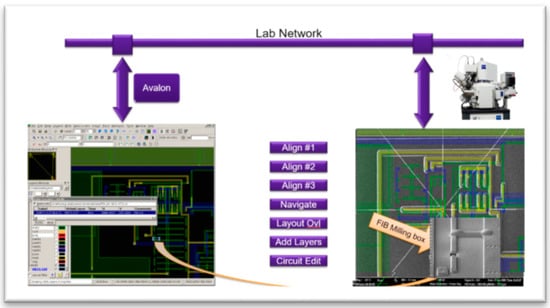 Figure 7. CAD navigation through Avalon and equipment communication. - The cross-section as viewed with the scanning emission microscope (SEM) analysis compared with the cross-sectional view of MaskView (see Figure 8).