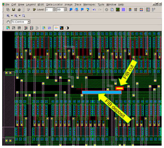 - Electronic Virtual Layer marks objects to represent net connectivity during FIB deposit or cut using KEdit (see Figure 10). The online trace will simulate the new connectivity to the virtual layer.