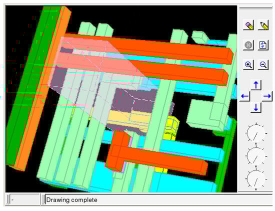 This example shown in Figure 25 shows that the UDOS search could find this single piece of Metal1 on the entire trace which is not covered by any other metal on top and has a 250 nm clearance around the metal line. Also, 3D view shown in Figure 26 gives a clear idea of the FIB task required to reach the Metal1 probe location deep in the chip. Further the layout (Avalon tool) is synchronized with the equipment to provide CAD Navigation and carry on the PFA (see Figure 27).