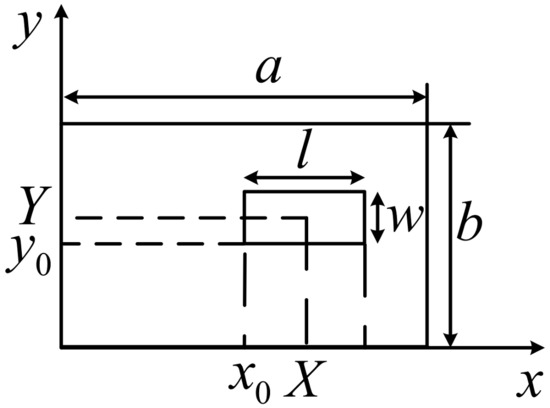 Similarly, when the incident wave is coupled into the cavity from the surface, the aperture is equivalent to a coplanar strip line with a length of and a characteristic impedance of . The cavity is then equivalent to a waveguide with a length of and an impedance of . Similarly, can be derived in the mode, which is determined by m and l. Then, by introducing the polarization parameter , the incident parameter , and the position parameter , can be obtained as follows: