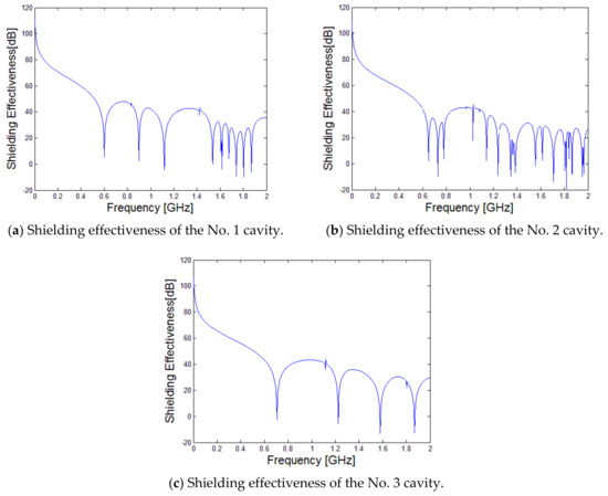 The total shielding effectiveness of the position ( = 8 cm, = 15 cm, and = 20 cm) in the cavity.