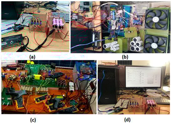 Experimental setup for (a) the FLC charger (hardware); (b) the FLIEMS; (c) the DAB-IBDC converter; and (d) the FLC charger (software-hardware interfacing).