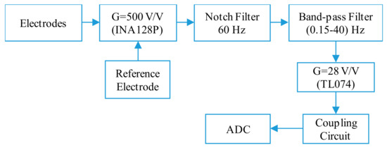 The diagram for the acquisition of the EEG and EOG signals is shown in Figure 4.