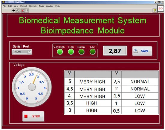 It was possible to implement a biomedical measurement system capable of acquiring, processing, and visualizing the ECG, EMG, EEG, and EOG signals, as well as measuring the bioimpedance in the skin. The device is composed of the following elements (see Figure 20).