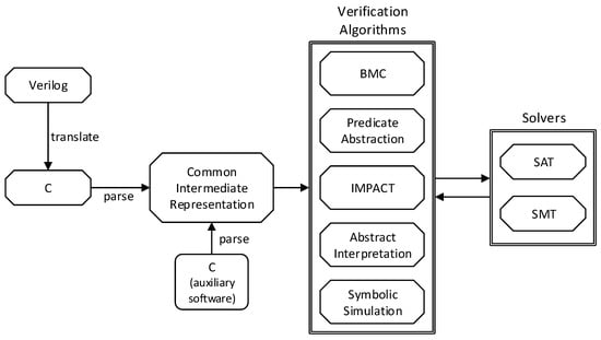 - Mukherjee, R.; Kroening, D.; Melham, T. Hardware verification using software analyzers. In Proceedings of the IEEE Computer Society Annual Symposium on VLSI, ISVLSI, Montpellier, France, 8–10 July 2015; pp. 7–12. [Google Scholar]