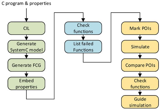 - Behrend, J.; Lettnin, D.; Heckeler, P.; Ruf, J.; Kropf, T.; Rosenstiel, W. Scalable hybrid verification for embedded software. In Proceedings of the 2011 Design, Automation & Test in Europe, Grenoble, France, 14–18 March 2011; pp. 1–6. [Google Scholar]