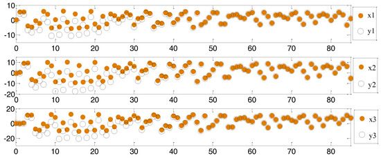 y 1 ( k ) = a 1 x 1 ( k ) + d 1 y 2 ( k ) = a 2 x 2 ( k ) + d 2 y 3 ( k ) = a 3 x 3 ( k ) + d 3