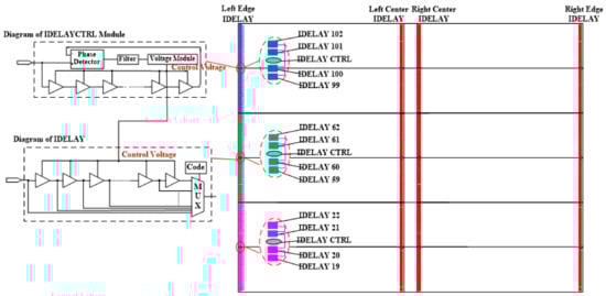 Diagram and locations of IDELAY and IDELAYCTRL modules.