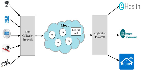In consideration of how the cloud is produced, the virtualization of objects is the accompanying normal step in this field. Virtualization [9] is a rising technique that creates virtual representations of physical resources and enables usage of resources as shared resources and on an on-demand basis. Virtual sensors [10] are required for taking care of complex tasks which cannot be handled by physical sensors. They can be utilized to remotely interface two regions of interest with a single function. Researchers have recently focused on sensor virtualization to advance applications in business, health, and academic domains, and they have made several proposals [11] which expand the paradigm of physical sensor networks in which client applications can access virtualized sensors that are capable of being operated from anyone else in software control [12]. For example, mobile crowdsensing could be one of the areas that can benefit from these virtualized sensors through participatory sensing [13]. A crowdsensing platform is presented in Reference [14] where thousands of sensors are required to collect context data from users in the city. Vehicular cloud computing [15] is another typical application, which merges mobile cloud computing and vehicular networking to integrated communication-computing platforms. A distributed and adaptive resource management controller [16] is proposed which aims at allowing resource-limited car smartphones to perform traffic offloading towards the cloud in vehicular access networks.