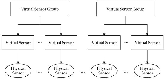 Relationship among virtual sensor groups, virtual sensors, and physical sensors.