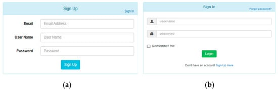 Snapshot of end user management in web. (a) User Sign Up; (b) User Sign In.