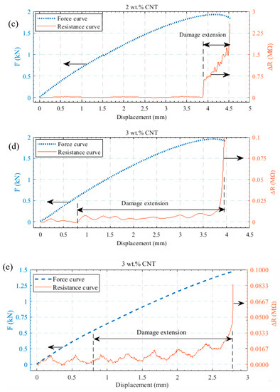 - Kwon, D.-J.; Wang, Z.-J.; Choi, J.-Y.; Shin, P.-S.; DeVries, K.L.; Park, J.-M. Damage sensing and fracture detection of cnt paste using electrical resistance measurements. Compos. Part B 2016, 90, 386–391. [Google Scholar] [CrossRef]