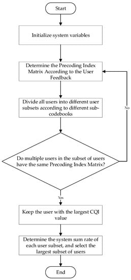 Three Dimensional MIMO (3D-MIMO) is a type of Massive MIMO Technology which has the ability to move the beam horizontally as well as vertically. In recent years, with the widespread use of smartphones such as mobile phones and tablets, the volume of mobile data services has exploded, and existing wireless communication systems can no longer meet such huge business demands. Therefore, academia and industry have successfully conducted research on 5G mobile communication. Massive MIMO technology is one of the candidate key technologies for 5G. Compared with the existing 4G technologies, it can significantly improve the spectrum efficiency and energy efficiency of the communication system and has become a research hotspot at home and abroad []. The combination of Massive Multi-user MIMO (MU-MIMO) systems can further utilize spatial freedom to significantly increase system throughput and spectrum efficiency []. As a key technology of the MU-MIMO system, precoding can effectively suppress multi-user interference and improve the Signal-to-Noise Ratio (SNR) []. However, to make full use of the role of precoding, the transmitter must obtain enough channel state information (CSI). For Time Division Duplexing (TDD) systems, CSI can be obtained through the reciprocity of uplink and downlink channels, but susceptible to pilot contamination []. In a Frequency Division Duplex (FDD) system, CSI acquisition relies on a feedback link. In an actual system, the feedback link bandwidth is limited. Therefore, in FDD massive MU-MIMO systems, codebook-based Multi-user precoding scheme, in which codebook design and multi-user scheduling strategy, are particularly important.