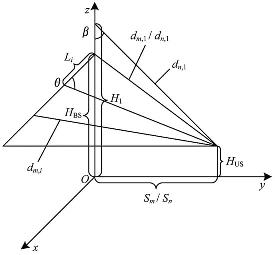 In the traditional MIMO system, the base station adopts a uniform linear array with a fixed down-tilt angle, and the wireless channel exhibits two-dimensional (2D) characteristics, that is, only the horizontal dimension freedom is available, which is called 2D-MIMO. However, in massive MIMO systems, base stations usually use 2D or 3D array antennas, which form the so-called 3D-MIMO technology [,]. Due to the expansion of the antenna array structure, 3D-MIMO channels exhibit different spatial correlations [,], and they also include horizontal and vertical dimension channel information. Therefore, 3D beamforming techniques can accurately align different levels of the dimensional sum. Thus, reduce the interference between users.