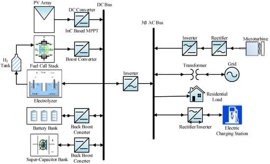 - El-Shatter, T.F.; Eskandar, M.N.; El-Hagry, M.T. Hybrid PV/fuel cell system design and simulation. Renew. Energy 2002, 27, 479–485. [Google Scholar] [CrossRef]