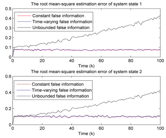 It should be mentioned that, from the adversary’s perspective, the unknown but bounded matrix M is regarded as physical constraints in the model of deception attacks (Equation (5)) which was introduced in []. Such physical constraints are unavoidable such as launching devices powered by limited capacity, networks with limited bandwidth, and defender’s system equipped with protection software []. Hence, the established attack model in Equation (5) under consideration is quite comprehensive that is closer to the practical engineering case. On the other hand, the sensitivity problem of fault-detection becomes more complicated because the false information sent by attacker is assumed to be energy-bounded, which has a similar form as additive disturbances and system faults.